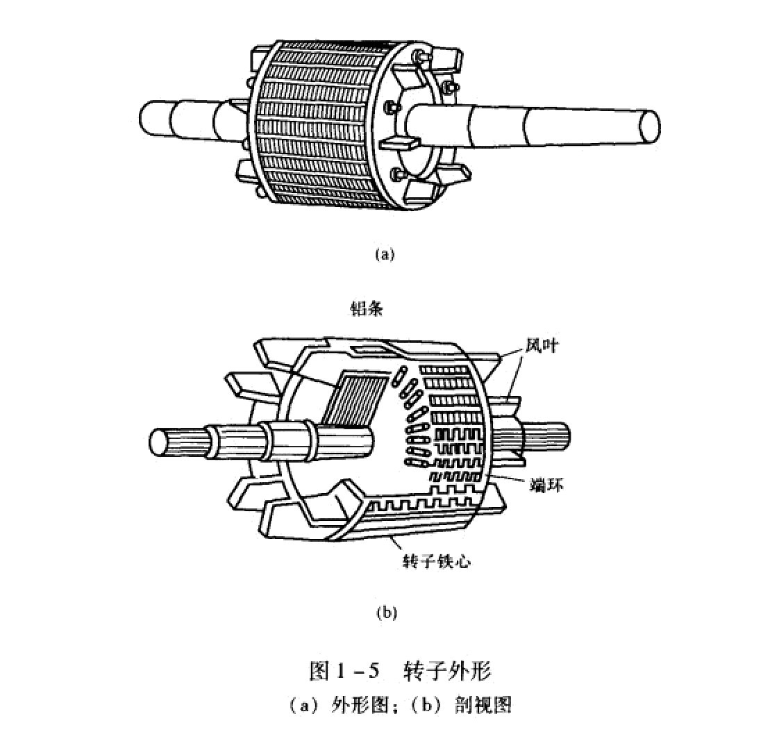 异步电动机的转子主要由转子铁心、转子绕组、转轴和轴承组成。转子外形如图I一5所示。