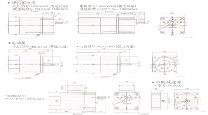 减速比:1:200~1:1800功 率:60W特 点:平行安装;减速比高达1800;尺寸小、安装方便 3.组合:电机+直角中实减速箱
