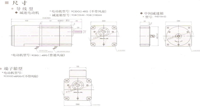 3、丰富的型号:截面尺寸范围由42mm(1W)至90mm(90W),马达的种率也有感应式、可逆式、三相、变速及附带电磁制动器马达等型号丰富的机种。