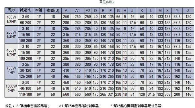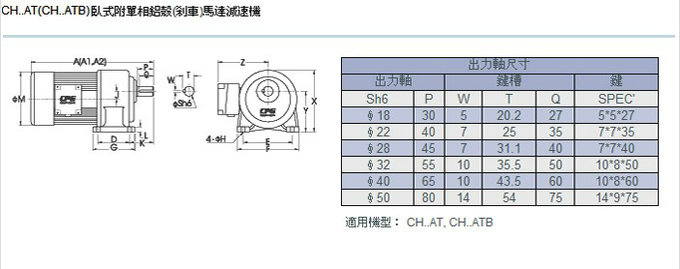 台湾CPG(城邦)二代卧式标准/缩框单相铝壳刹车马达减速机规格如下: