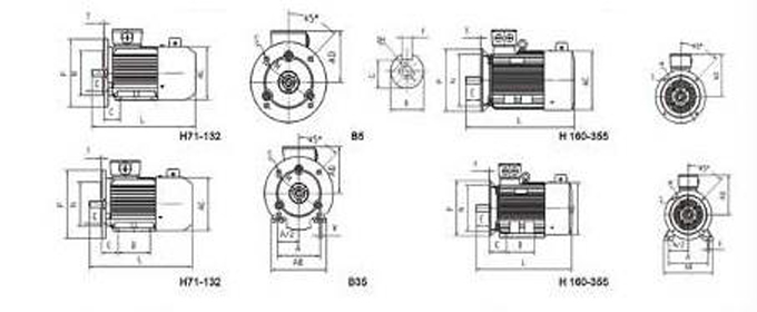 电机安装方式为:B5标准法兰; B14小法兰; B3卧式电机宽电压:(220|380V;240|415V;260|440V;280|480V)宽频率:50|60HZ其特点是:低噪音、小振动其绝缘等级为F级绝缘,可耐155℃高温 ;其防护等级为IP55