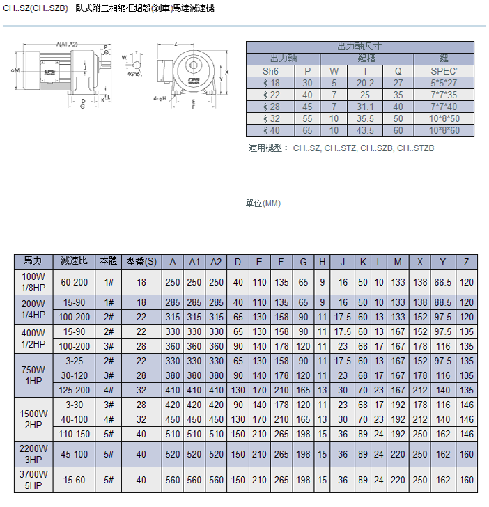 台湾城邦卧式(标准/缩框)附三相刹车减速马达: 台湾原装进口,采用三菱的技术、实现了美观与优秀的品质结合体积小、重量轻、低噪音、低振动、防护等级IP55、外形美观、机种丰富安装维护简单等特点。采用最先进的设计思路、高强的铝质材料、齿轮经SKIVING精密滚齿加工、齿轮精度达1-2级,经过高周波热处理,齿轮厚度较厚,具有良好的承载能力。并采用日本和瑞典专用轴承齿轮功率范围数比3-1800,功率100W-3700W。