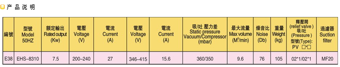 双段鼓风机EHS8310电压:110V-220V-380V-415V-660V,50HZ/60HZ通用